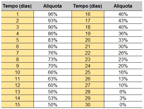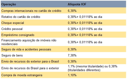 O IOF é cobrado na maioria das transações financeiras. De acordo com essa tabela: